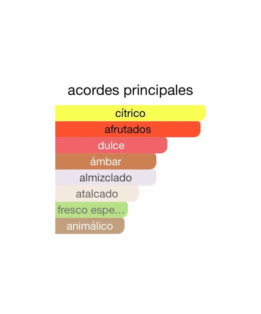 El fondo se apoya en almizcle, maderas claras y un leve dulzor envolvente, que le dan mayor fijación y una estela limpia, confortable y muy agradable. Es un perfume que acompaña, no satura, y deja una impresión prolija y femenina durante horas.
